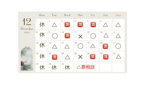 ご予約状況により、お時間等のご変更をお願いする場合がございます。