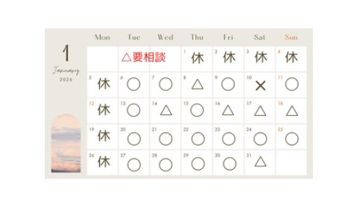 ご予約状況により、お時間等のご変更をお願いする場合がございます。